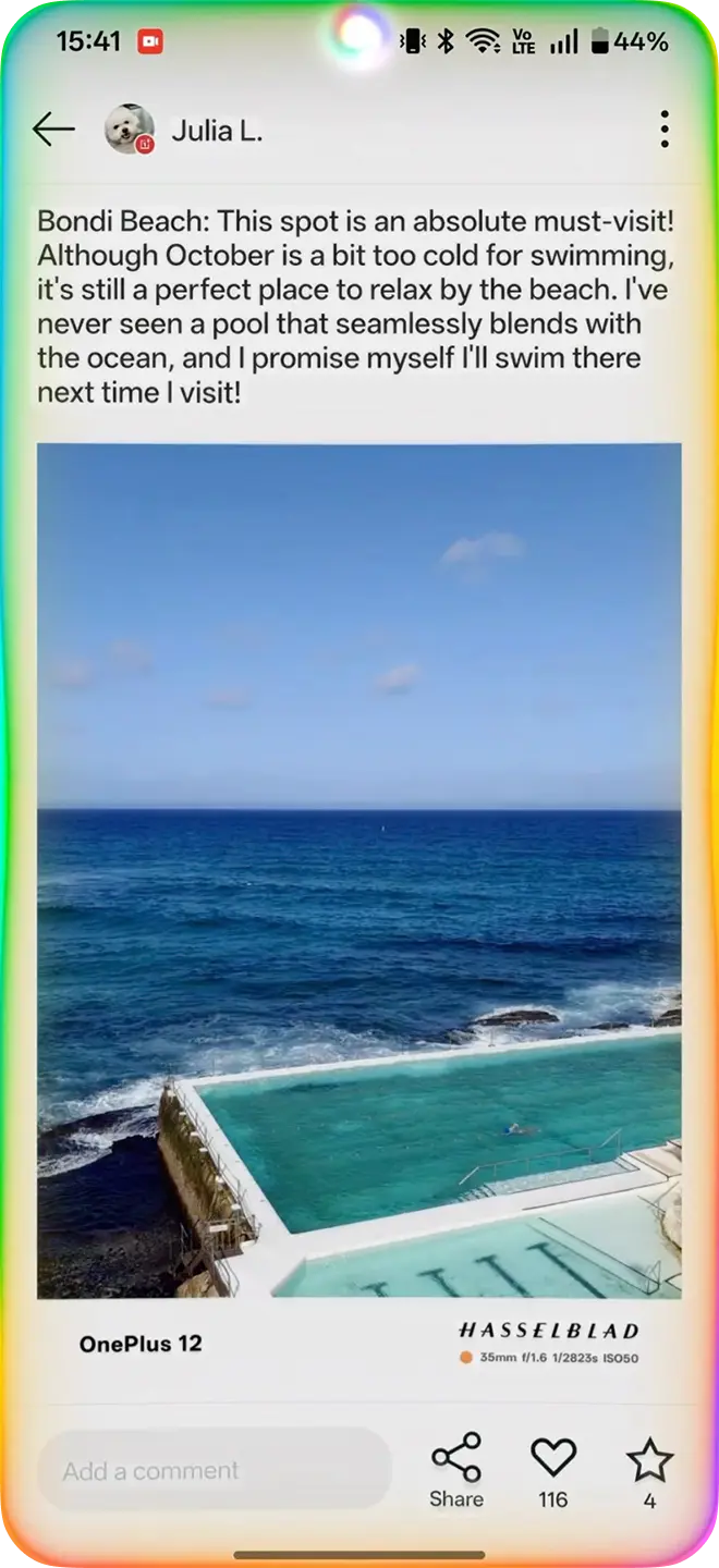 Камера OnePlus 15R работает на базе самого передового чипа обработки изображений. Идеальная детализация, масштабные пейзажи и кристально чёткие портреты словно оживают.